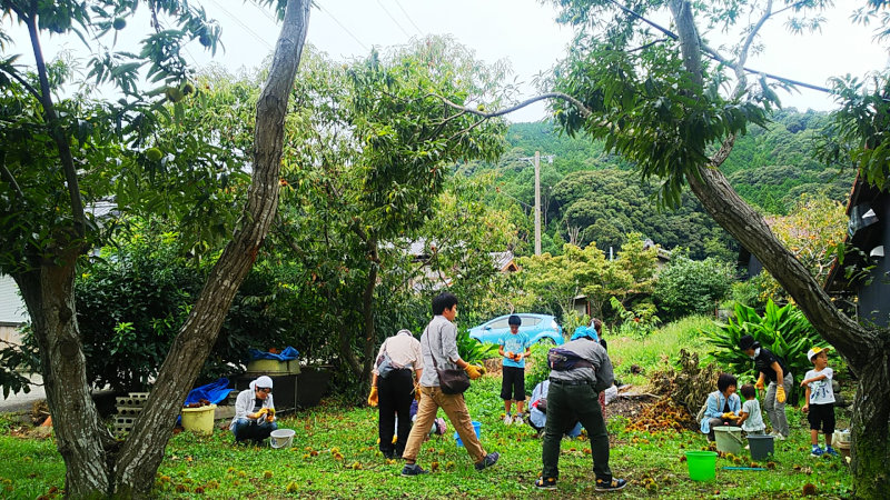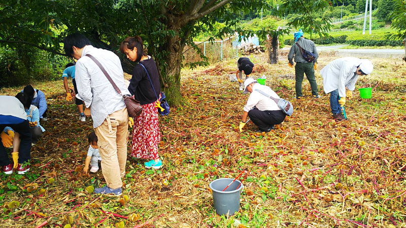 はじめて栗拾いを体験する子供たちや、普段は厳めしい様子の叔父達もこの日は皆笑顔で栗を拾っていました。